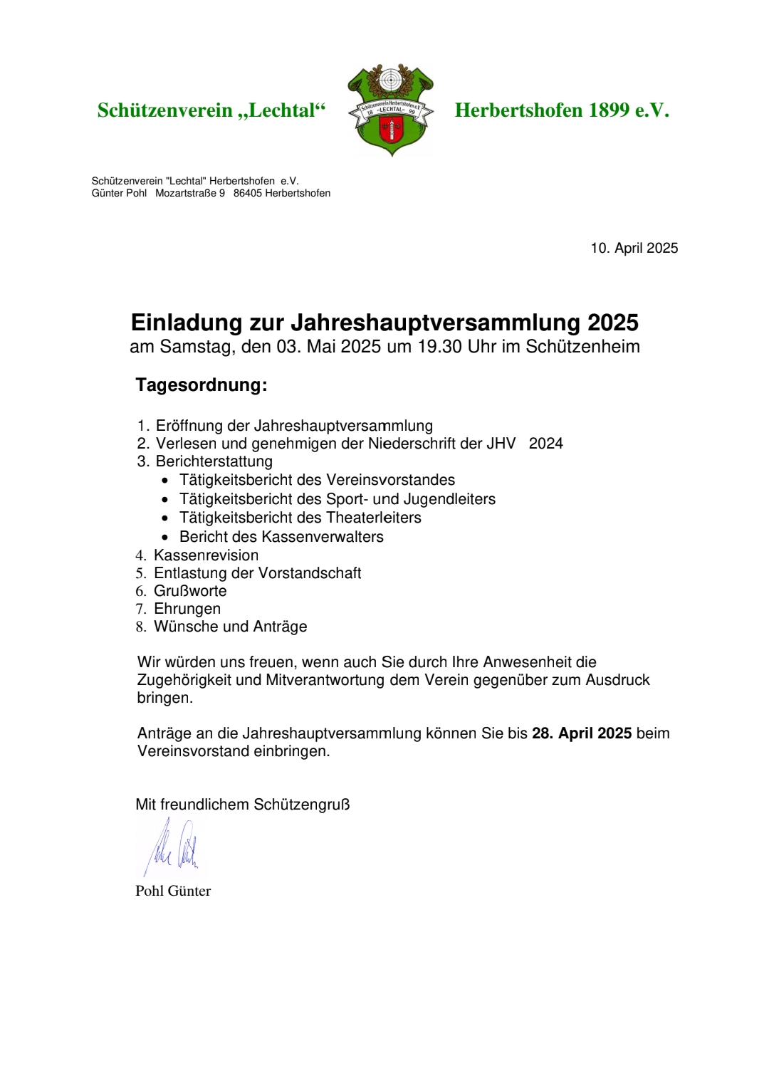 Bei der Jahreshauptversammlung 2025 konnte Vorsitender Tobias Finkel eine stattliche Zahl an Mitgliedern begrüßen. Ein besonderer Gruß galt 3. BGM Rudolf Helfert als Vertreter des Marktes Meitingen, Herrn Gerhardt Waldmann als Vetreter des Schützengaues Wertingen, sowie den anwesenden Marktgemeinderäte Christian Deisenhofer, Ernst Dittrich und Anton Kraus.